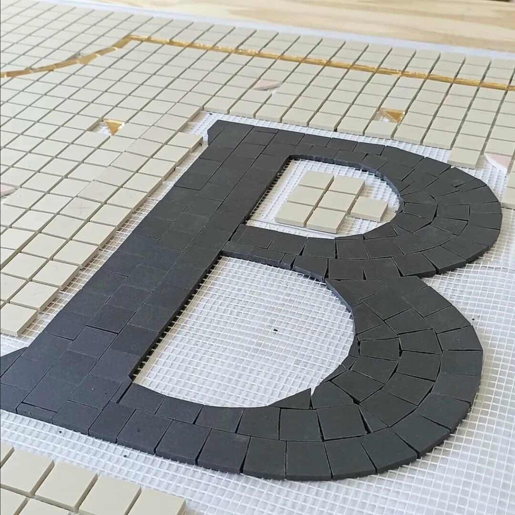 Une mosaïque haute en couleurs ou chaque carreaux à été coupé un par un à la main .