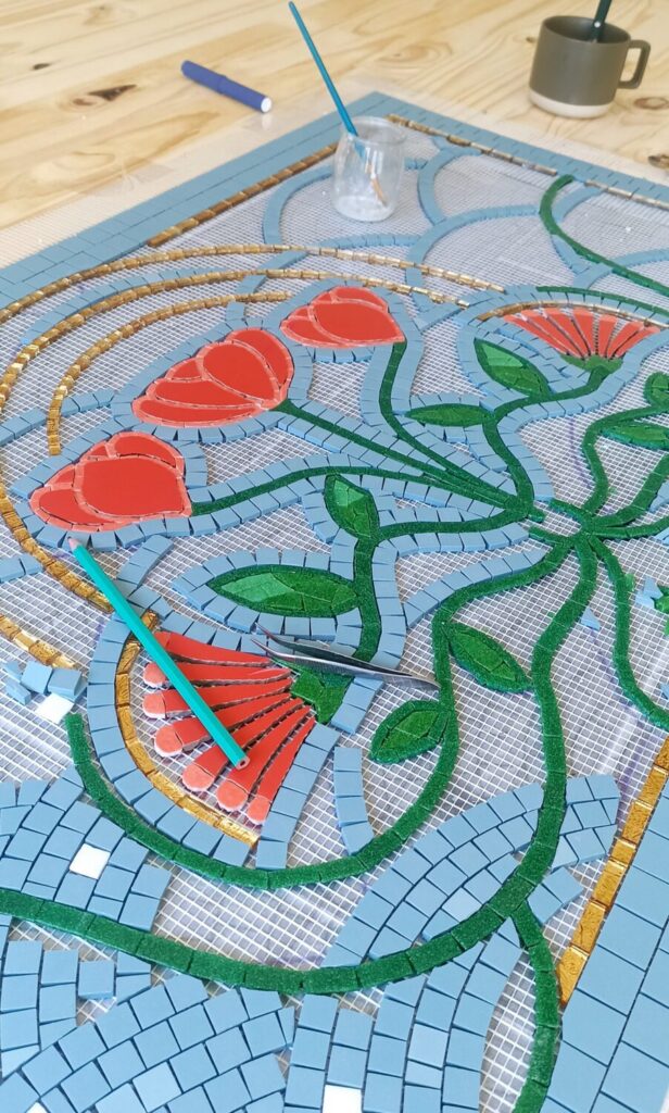 Projet mené de la création de la mosaïque à la préparation du support, la pose et le jointage .